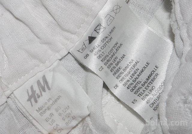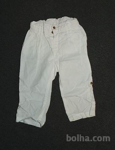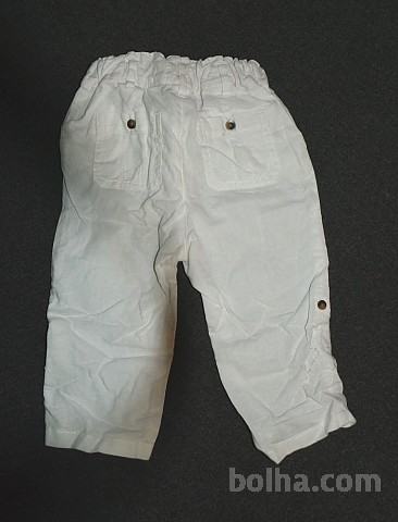 Bele hlače iz mešanice lanu (55%) in bombaža (45%), z gumboma na hlačnicah.