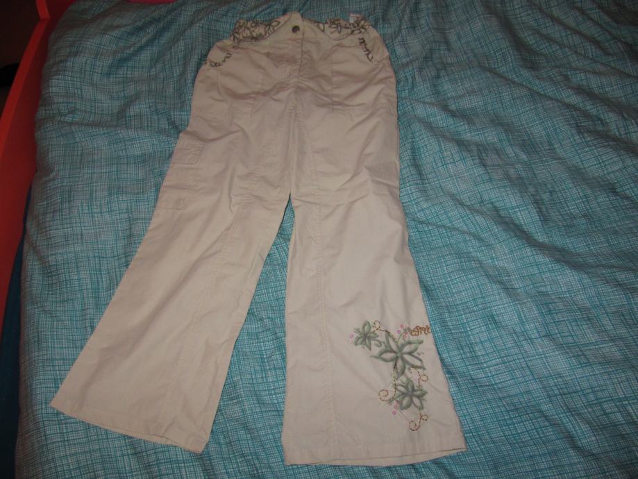 Prodam nove udobne hlače z elastiko za reguliranje v pasu št. 128, imam tudi nove v št.110 bele barve. Cena 4E + ptt
