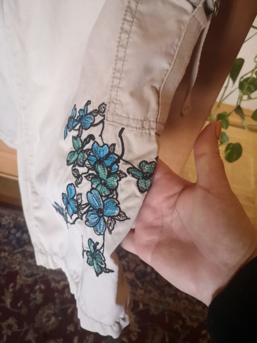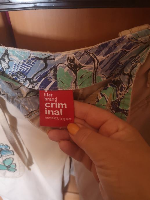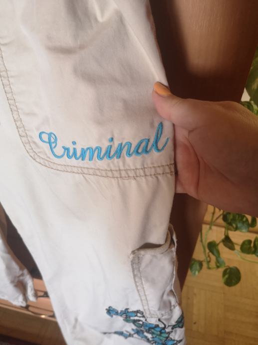 Prodam zelo atraktivne hlače kultne firme Criminal iz Velike Britanije. Rožice so vezene, morde, tirkizne in črne barve. Hlače so 3/4.