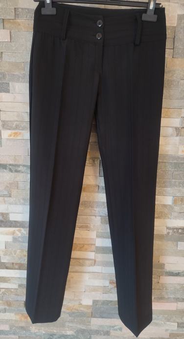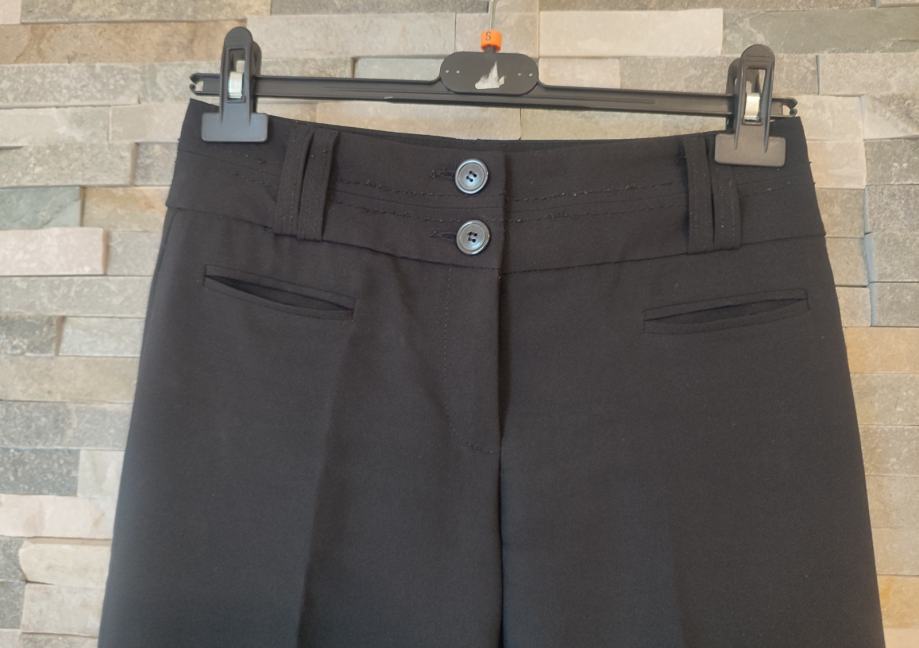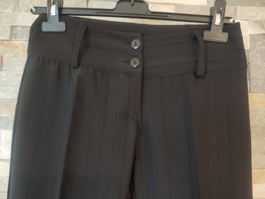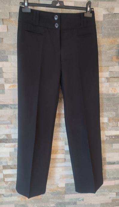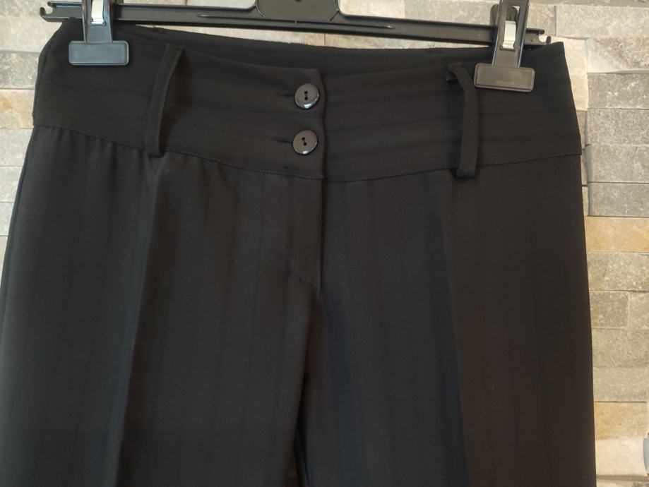 2. Ženske elegantne hlače v črni barvi, italijanskega proizvajalca. Velikost S, dolžina 100 cm, širina v pasu 36 cm, širina v bokih 53 cm. Sestava: 63 % poliester, 31 % viscose, 6 % elastan.