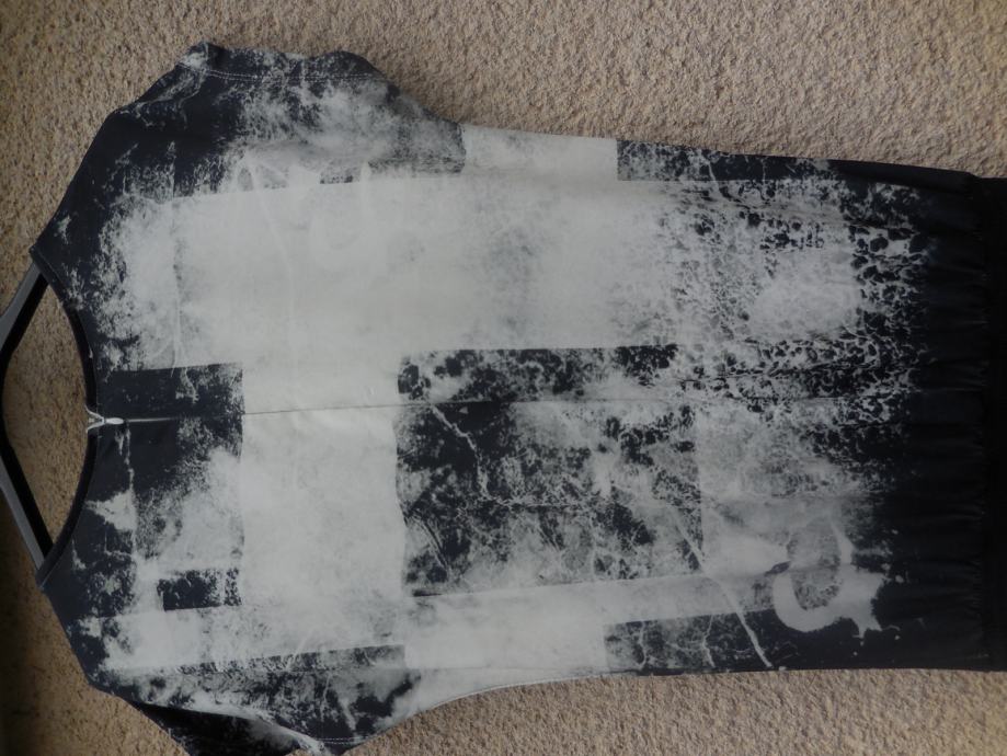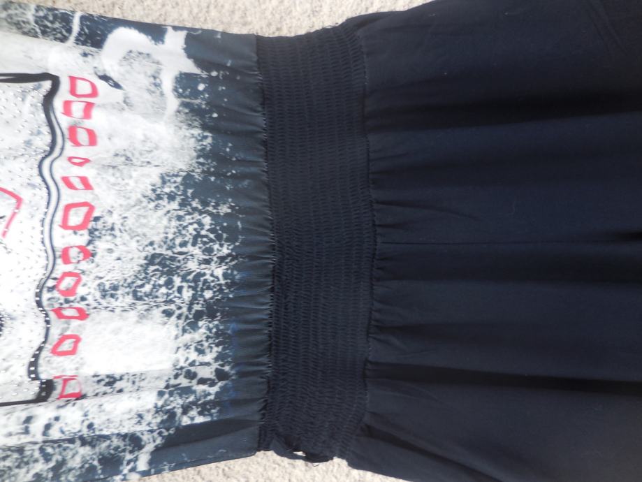 Samo 1x oblečen, zelo vpadljiv, zelo prijeten na otip. Zgornji del je raztegljiv, spodnji pa ne. V pasu ima 6cm široko elastiko ter zanke za pas, ob strani ima 2 žepa.