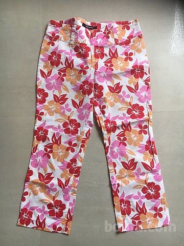 Prodam NOVE izredno lepe poletne HLAČE, znamke Tally Weijl, v krasni pastel oranžni rdeče roza rožnati kombinaciji, dolžina 7/8 (Opomba: spredaj levo imajo komaj opazno bledo liso - ne vem od