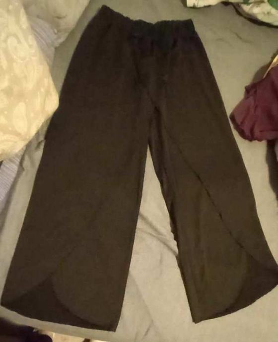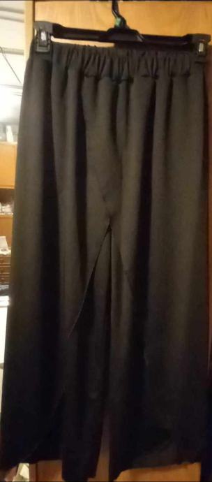 Na novo kupljene elegantne široke črne orientalske hlače z visokim razporkom na vsaki hlačnici, velikost S - L (širina elastičnega pasu raztegljiva od 33 cm do minimalno 45 cm).