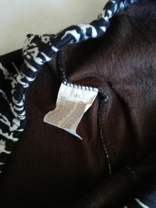 Kosmatene hlače M/L. Krajše. Zelo tople. Podložene. Flisaste. Črne z belim vzorcem. Cena: 4 €