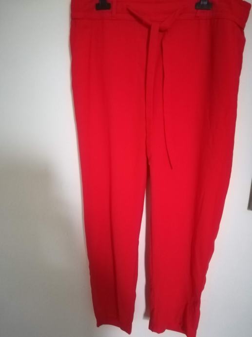Padajoče ohlapne rdeče hlače, XL, dolžina 96 cm, obseg pasu 46x2 cm.