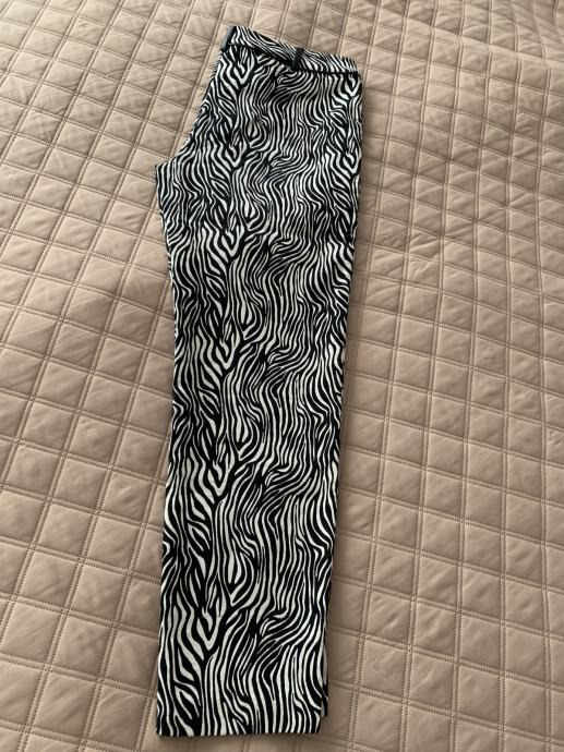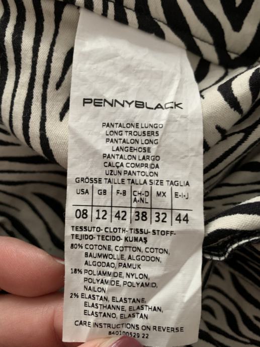 Prodam ženske hlače znamke Pennyblack, z usnjenimi dodatki v pasu, 7/8 dolžina, št. 38. Primerne za jesen, zimo, kompakten, elastičen materijal. Dolžina celotne hlačnice je 92cm, od koraka dol 67cm, pas 43cm. Malo nošene.