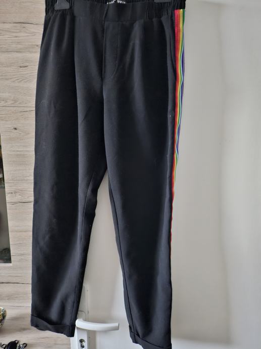 Prodam trenirka style hlače s stranskim vzorcem mavrice. Pas je elastičen. Dolžina 83cm. Hlače imajo rahle znake obrabe Prevzem v Lj