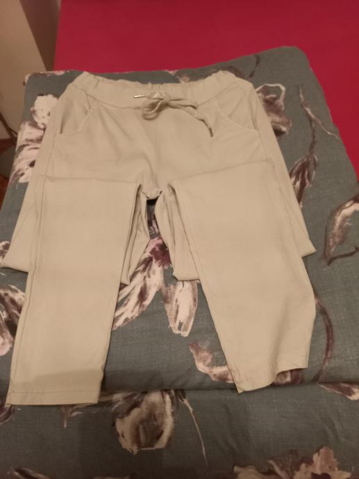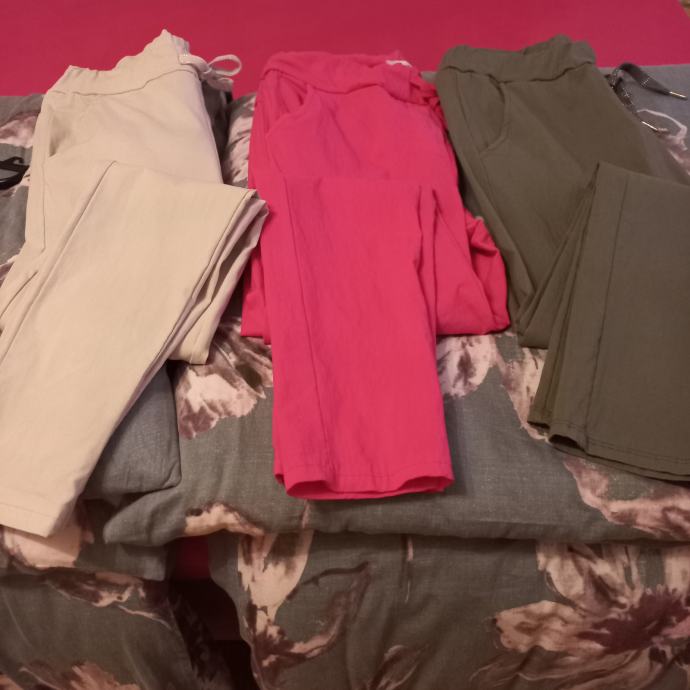prodam nove trenirka uni št.S.M.L.XL bež,roza,in vojaško zelene barve enak kroj v pasu elastika in vrvica stranski žepi zelo raztegljive primerne za več številk zaradi elastičnosti mpc.cena 39 EUR v butiku v Ljubljani.Hlače so enakega kroja kot prikazuje 2 slika le da so različne barve.cena za 1 komad