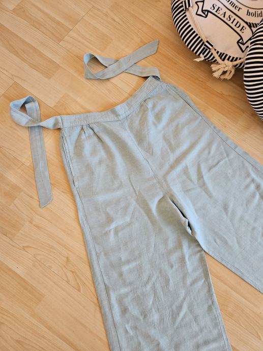 3/4 dolžina, ohlapne, elastika zadaj, trak za zavezovanje, 2 žepa. Odličen material (53% lan, 47% viskoza). Prijetne, zračne, lahke.