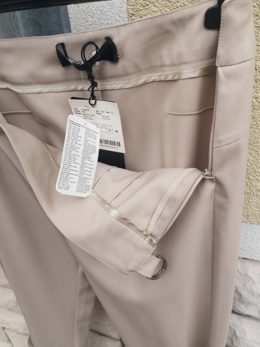 Prodam nove ženske elegantne hlače znamke Max Mara Marina Rinaldi, velikost ustreza 42. Hlače so 98% volna 2% elastan, eleganten model, zadrga na boku, okrasni pasovi pod koleni. Raven kroj, rahlo širše hlačnice. Nove z etiketo.