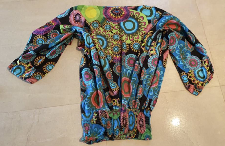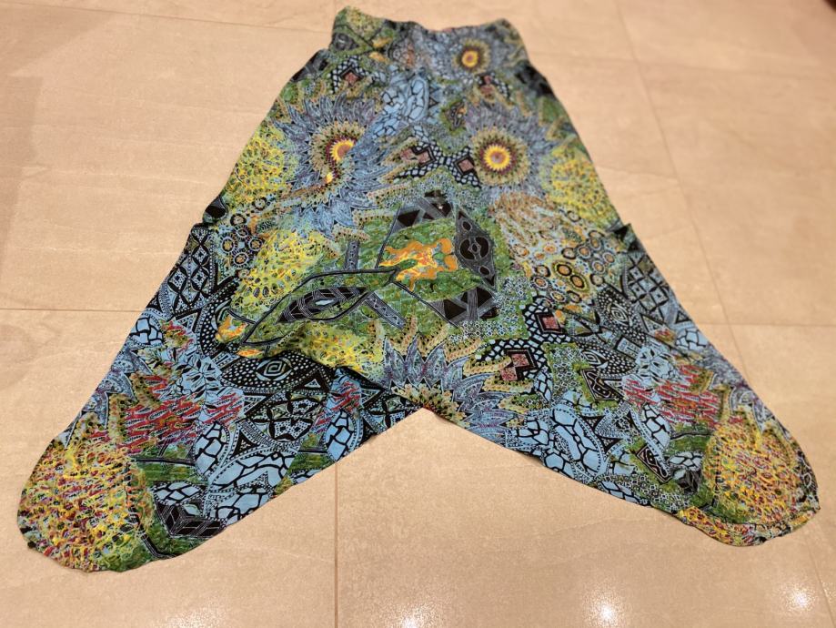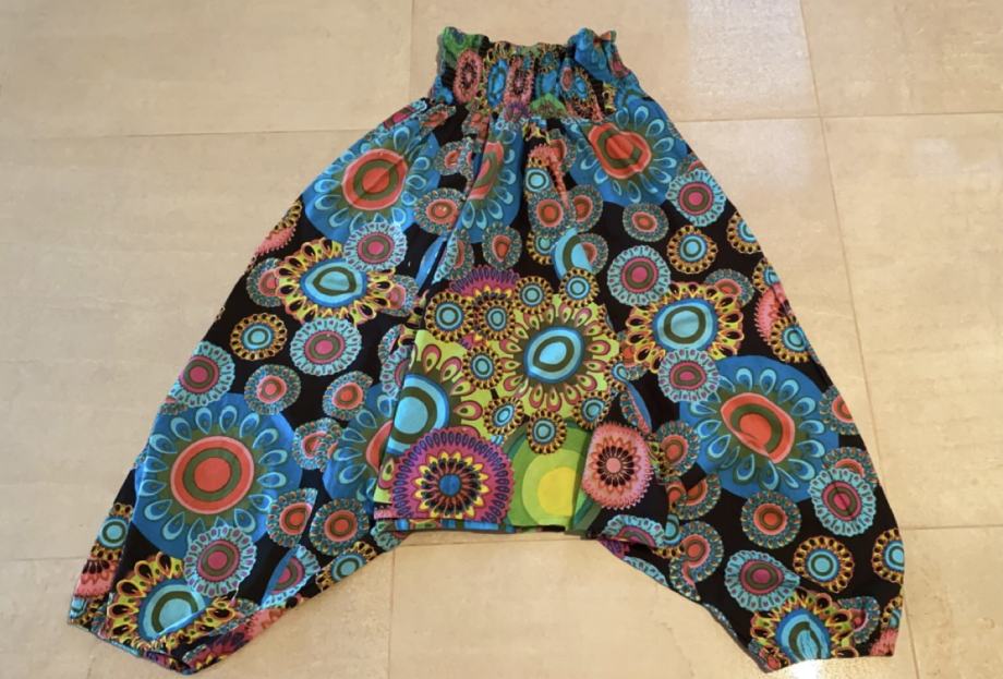 Prodam odbite HLAČE oziroma MAJICO, vrhunske znamke KÉAWA, s prečudovitimi vzorci mandal v črno-zelenih-rumenih-modrih in roza odtenkih, z nabranim patentom v pasu. (Opomba = žal že PRODANO!) Velikost: univerzalna, 100 % bombaž.