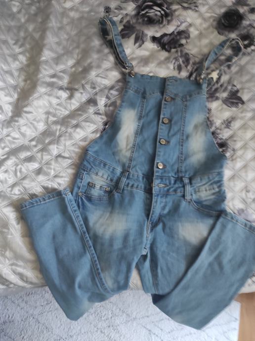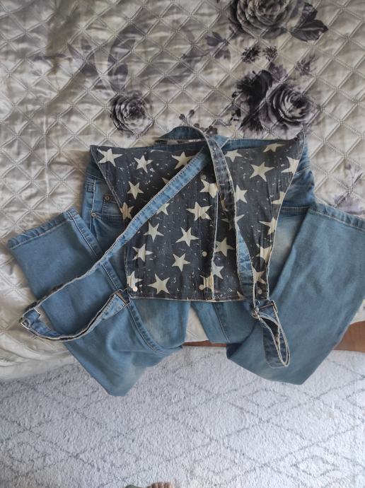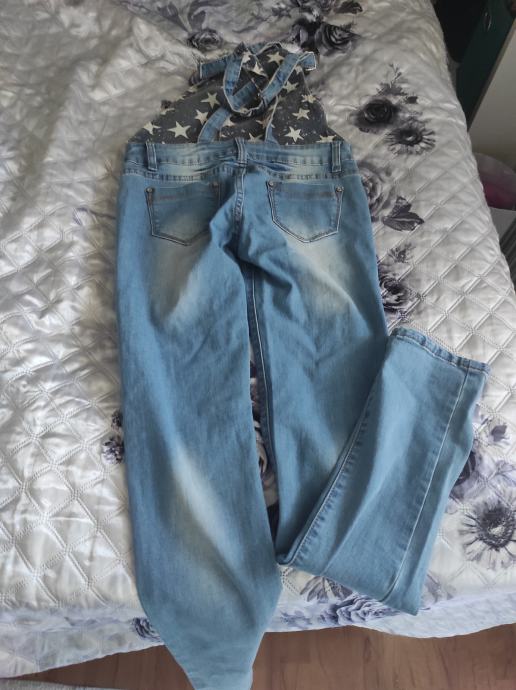 Prodam zelo ohranjene kavbojke z naramencami,parkrat oblečene.Št.S