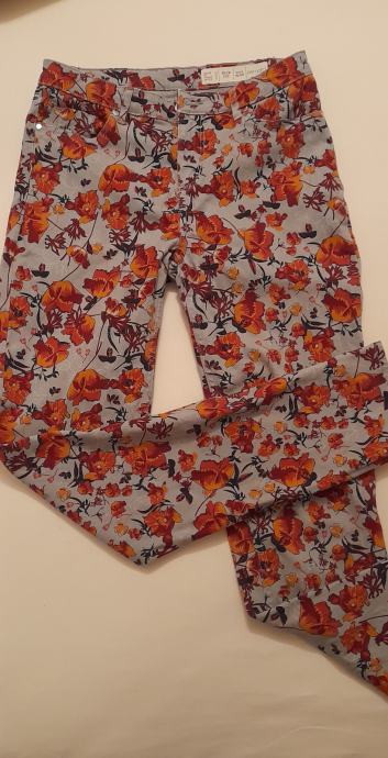Odlicno ohranjene hlace - cvetlicni vzorec, st. 38, material 98% bombaž, 2% elastan.