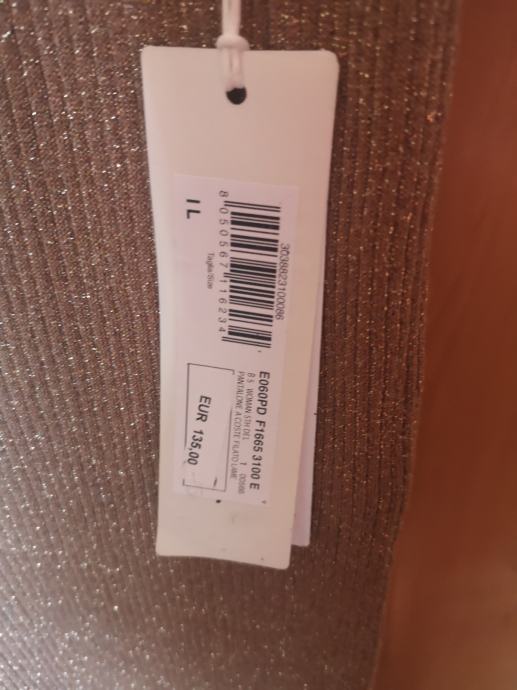 Prodam samo probane Stefanel hlače. MPC je bila 135,00 eur. Hlače so kavne barve melirane z zlato, zato so primerne tudi za svečan dogodek. Številka je L, primerne pa so tudi za M, ker je material raztegljiv.
