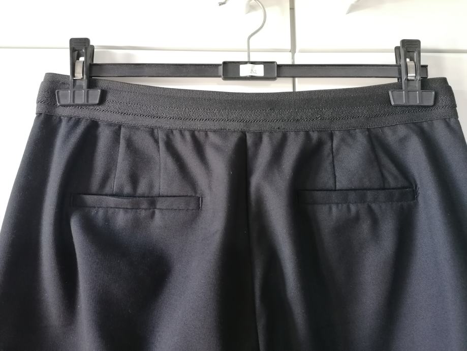 Zara hlače na črto velikost L. Mešanica bombaža, poliestra in elastana. Zadaj v pasu imajo elastiko za lepše prileganje. Dolžina hlačnice v koraku je 69 cm, stranska dolžina (od pasu do spodnjega roba) je 94 cm. Nošene dvakrat.