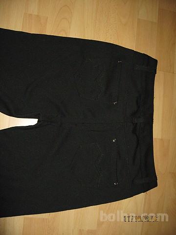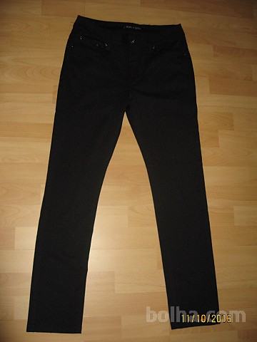 Prodam odlično ohranjene ženske črne hlače, številka 40. Hlače so športno-elegantnega kroja, iz malo debelejšega materiala (65% bombaža, 35% plyestra in 5% elastana), v pasu srednje visokega kroja, drugače ozko krojene. Kupljene so bile v Modiani. Cena je 14,00 eur + 4,00 eur ptt ob predhodnem nakazilu na trr.