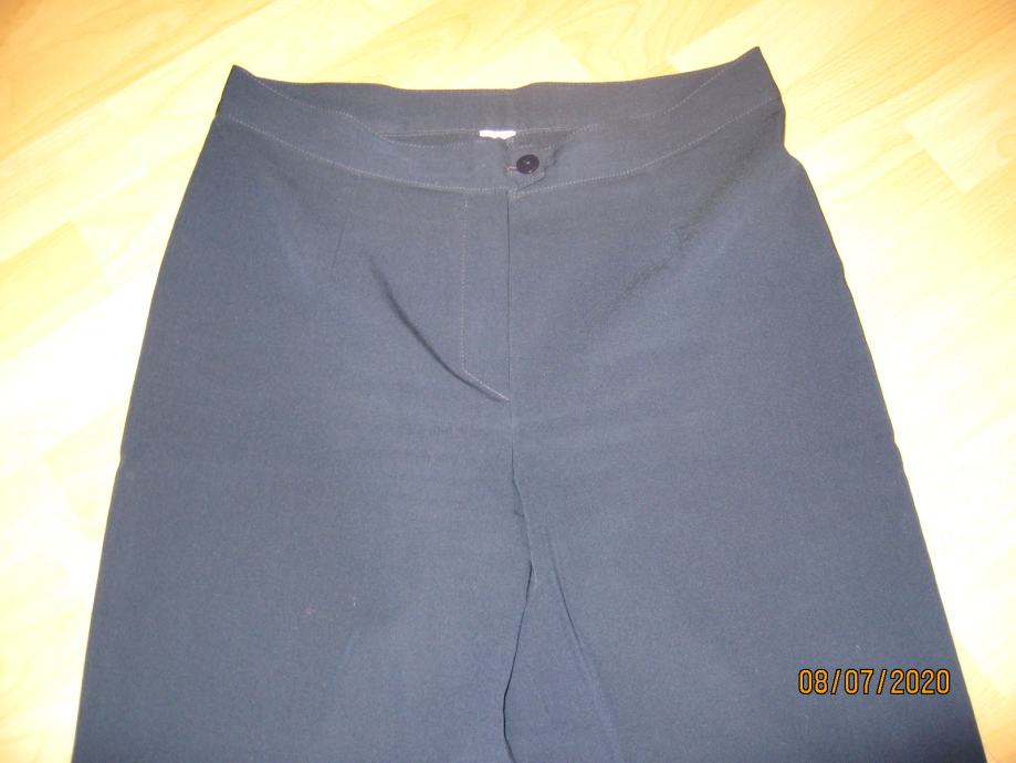 Prodam odlično ohranjene, malo nošene, ženske, temno modre poslovne hlače št. 40. Hlače so klasičnega, ravnega kroja, iz lahkega materiala, ki se ne mečka (rahlo raztegljivo), pralne v pralnem stroju. V pasu merijo 40 cm, v bokih 49 cm in v razkoraku je dolžina 83 cm. Kupljene so bile pred dvema letoma v Modiani. Cena je 14,00 eur + 4,00 eur navadne poštnine ob predhodnem nakazilu na trr.