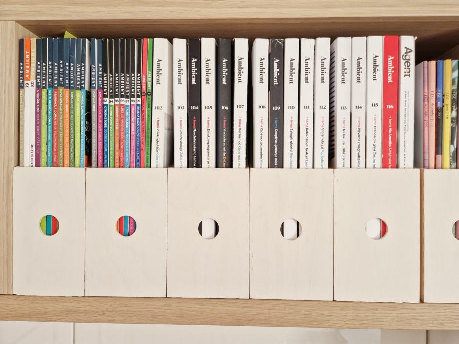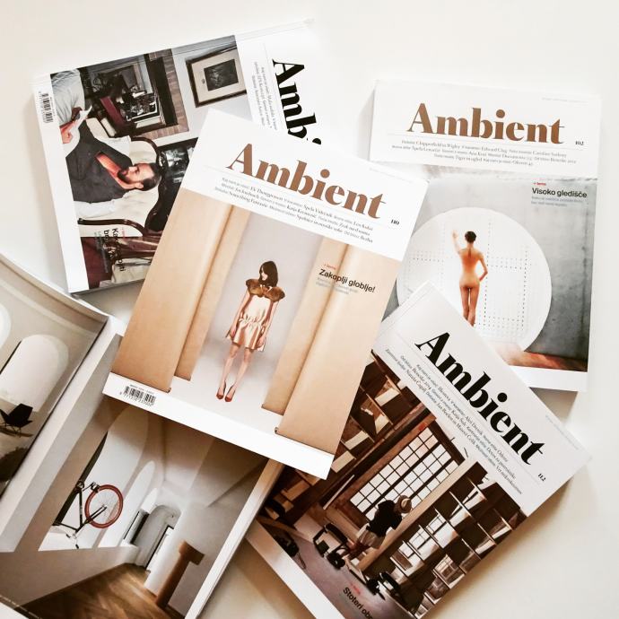 Prodam komplet legendarnih slovenskih revij AMBIENT. V celotni zbirki manjkata le dve številki (št. 3 in št. 14). Revija je izhajala do številke 117 (zadnja se je imenovala Agent). Revij je torej 115. Antologija slovenskega oblikovanja, še vedno zelo aktualno branje z zelo zanimivimi arhitekti, oblikovalci, strokovno javnostjo, ljudmi iz javnega življenja, intervjuji ... Revije so zelo lepo ohranjene.