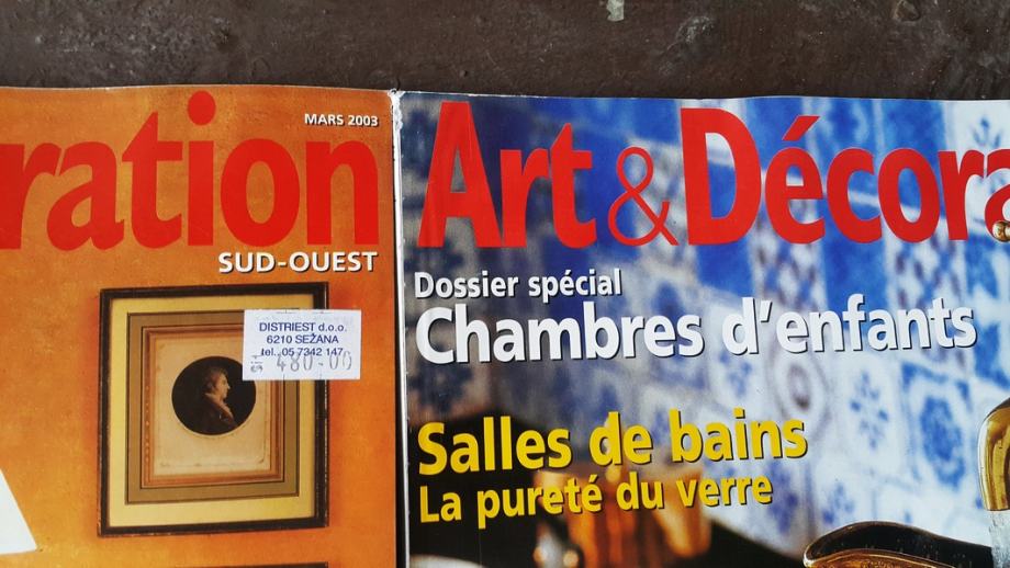 Prodam 6 številk francoske revije Art & Decoration s področja doma in arhitekture. Vse so bile last Mame, ki/katera pa zaradi upokojitve in drugih zdravstvenih omejitev nima z njimi več kaj za početi. Zato, preden jih trajno odvozim na Dinos, bom poskusil še tukaj, če bi komu kaj prav prišle. Glede na starost so kar odlično ohranjene, nič ni kaj strgano ali kaj podobnega, tisk (berljivost, ohranjenost črk) je še več kot odličen. Kar se tiče pa uporabnosti znanja v njih pa presodite sami. Cena v oglasu je za komplet, ker bi se le rad znebil vsega naenkrat. Seveda je pa možen nakup tudi posamične revije. V tem primeru je cena/kos okoli 2 €.