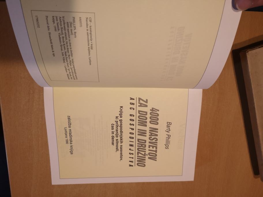 Naslov 4000 nasvetov za dom in družino : ABC gospodinjstva : knjiga gospodinjskih nasvetov, ki prihranijo sitnosti, čas in denar / Barty Phillips ; [prevedli in priredili Andreja Bricelj, Breda Konte, Nada Pantić-Starič, Igor Ravnik, Marjana Samide, Vladimira Štivan, Jože Vilfan]