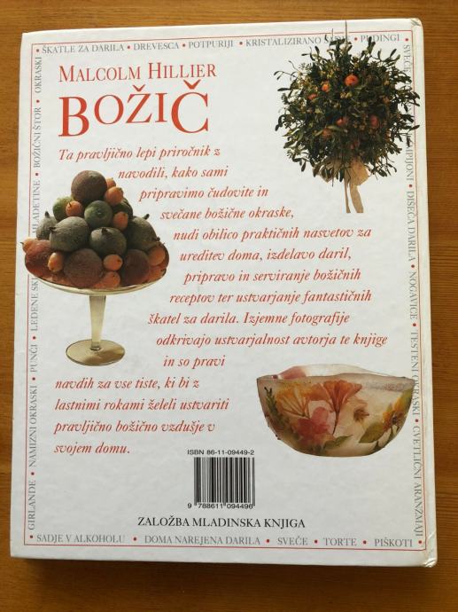 Prodam odlično ohranjen priročnik z naslovom BOŽIČ, avtorja Malcolma Hillierja. Knjiga je izšla pri založbi Mladinska knjiga, leta 1994, je v trdi vezavi in ima 120 strani.