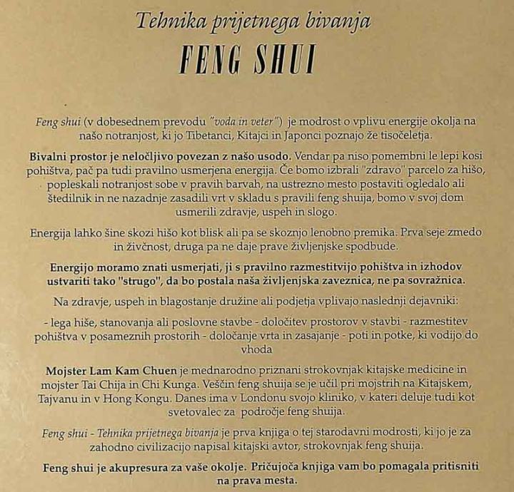 FENG SHUI; USTVARIMO ZDRAVO BIVALNO IN DELOVNO OKOLJE, Lam Kam Chuen