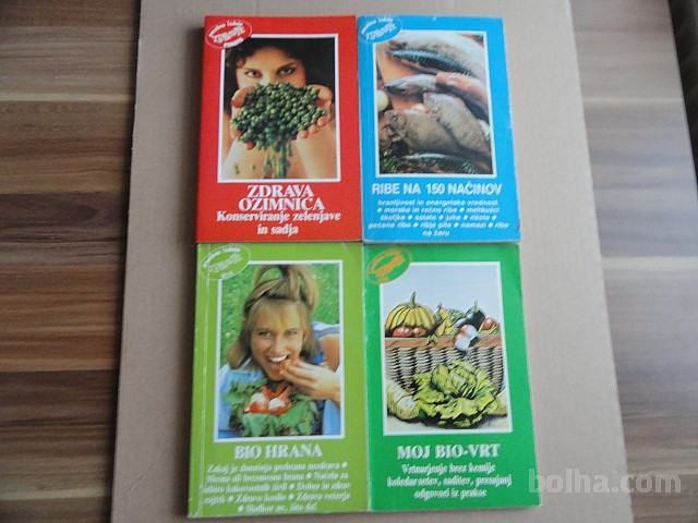 Knjige POSEBNA IZDAJA ZDRAVJE, 4 KNJIGE (BIO HRANA, MOJ BIO VRT, ZDRAVA OZIMNICA, RIBE NA 150 NAČINOV), 80 leta, broširane, dobro ohranjene. V kompletu 4 knjige za 20 evrov ali posamezno 5 eur.