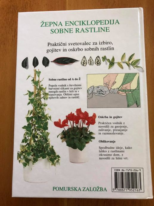 Prodam odlično ohranjen priročnik z naslovom Sobne rastline, avtorja Johna Brookesa. Priročnik je izdala Pomurska založba, leta 1996, je v trdi vezavi in ima 240 strani. Knjiga je kot nova in tako primerna tudi kot darilo.