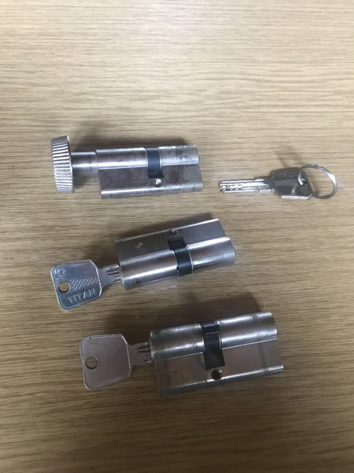 Prodam 3 krat rabljene cilindricne vlozke protivlomne kljucavnice,kot so na sliki,z 3 kljuci.
