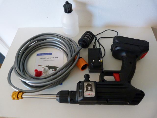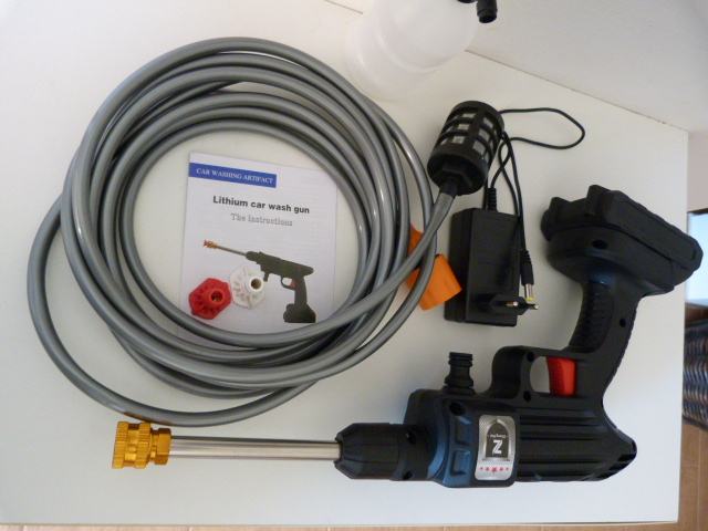 To kar je na sliki, primerno za pranje tam kjer ni vode, zadostuje kanta vode za zajem. Vse v setu, to kar je na slikah: pištola, baterija, polnilec, nastavki, cev 5 m, dozirnik detergenta. Skupaj preizkusimo. Prevzem na relaciji LJ- Obala. Tel.: 041647400