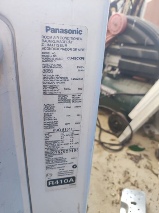 Prodam rabljeno in delujočo klimatsko napravo Panasonic 3,6 KW zunanjo in notranjo enoto.
