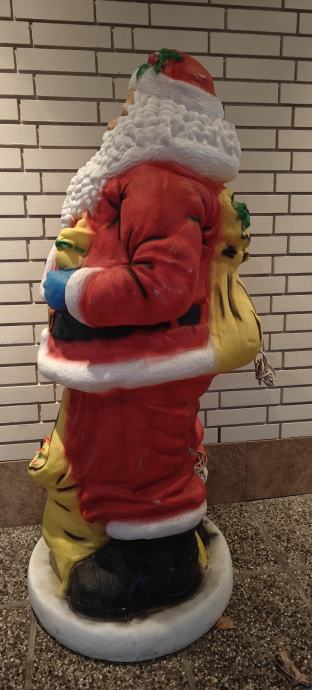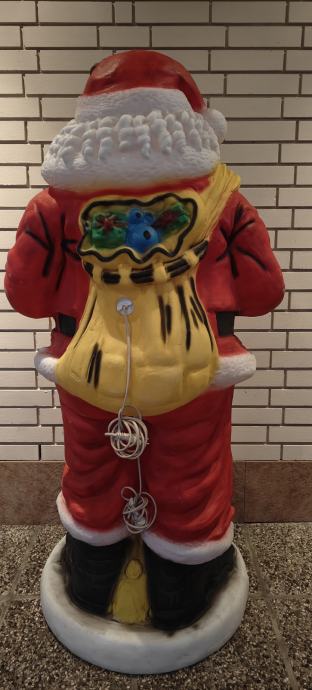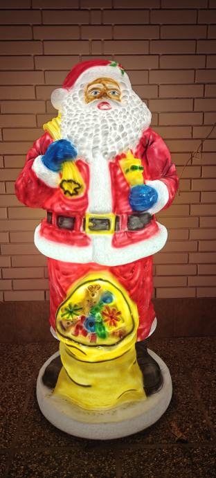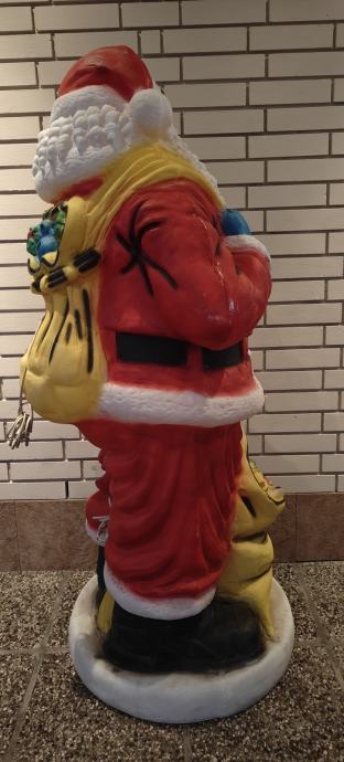 Naprodaj je božiček iz plastične mase v velikosti 160 cm in premerom okoli 90 cm ter z lučko, ki ga osvetli od znotraj.