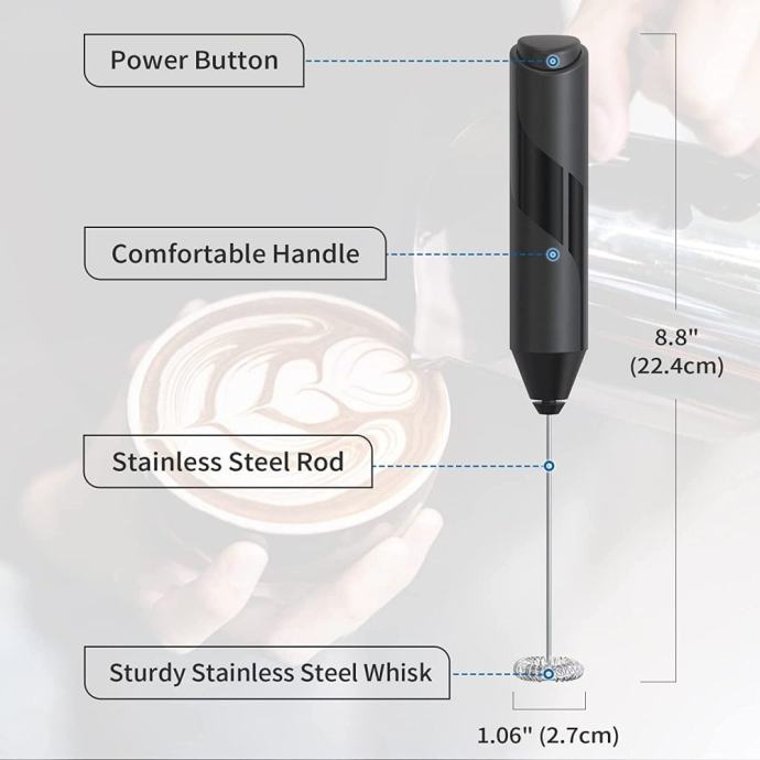 【BATERIJSKO DELO】Naš zmogljiv in trpežen ročni penilnik mleka napajata dve AA bateriji (nista priloženi), preprosto stikalo z enim dotikom z zmogljivim motorjem, a nizko stopnjo hrupa. Deluje odlično in tiho za vsakodnevno penjenje kave.