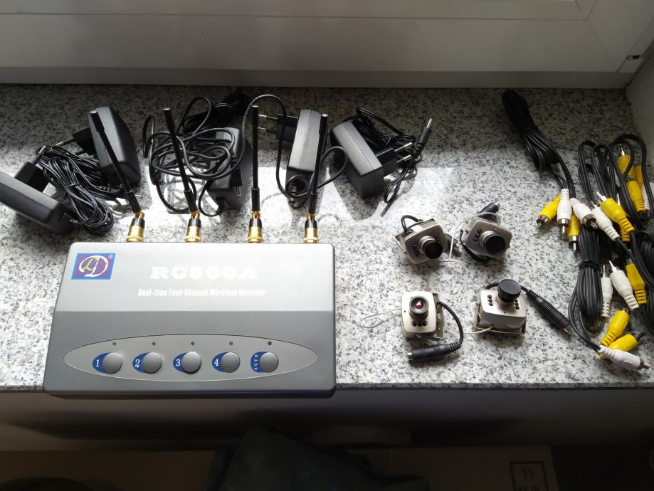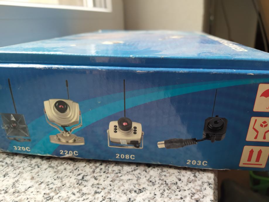 Prodam NOV NEUPORABLJEN brezžični videonadzor s 4 kom kamer, snemajo v temi, snemajo zvok in sliko gibanje. Kompleten s vsemi napajalniki, kamerami, antenami, kabli. Vsi podatki razvidni iz fotografij. Cena za nov neuporabljen komplet je 100 eur.