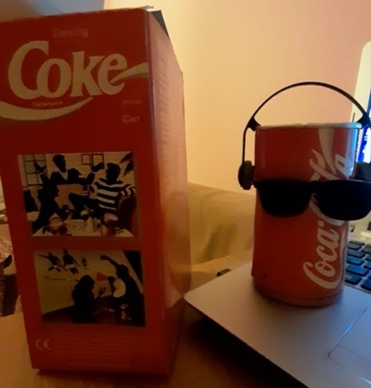 Coke pločevinka, ki se giba ob ritmu glasbe.
