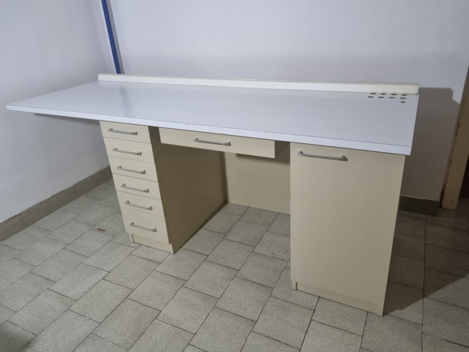 Prodam mizo s predalniki. Dimenzija mize je 200cm x 70cm. Miza je bila v uporabi v zobotehničnem laboratoriju. Možen prevzem v Mengšu. Kontakt 041/336-931 Teja