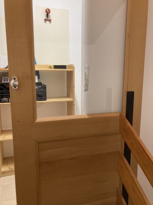 Vrata so iz bukovega lesa, brez poškodb ali vidnih znakov uporabe. V uporabi so bila malo, saj v tej hiši nismo ziveli in jo zdaj obnavljamo.