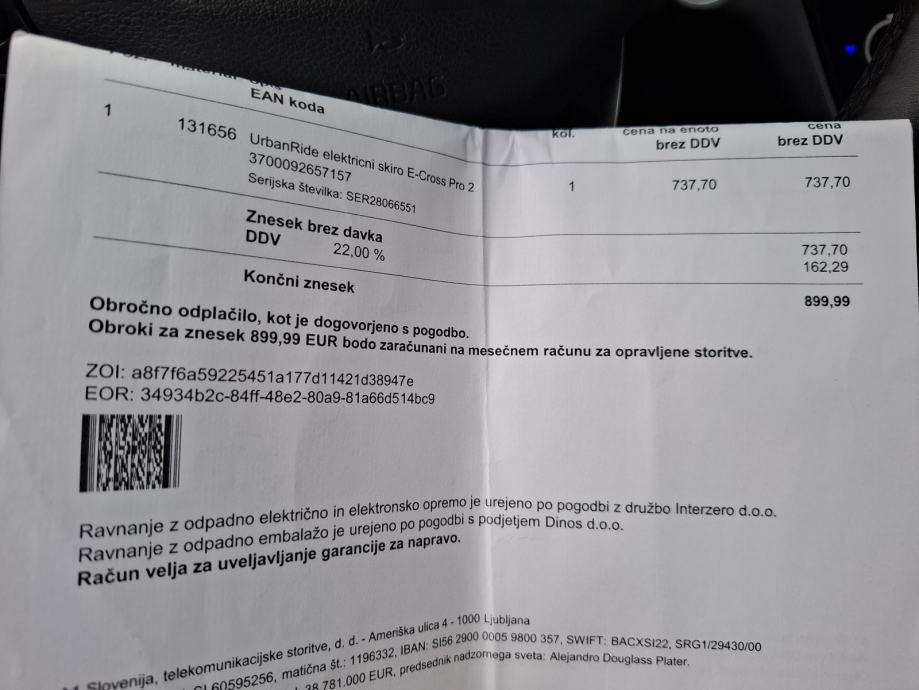 Električni skiro Urban ride Pro 2 popolnoma nov, Cena novega 900 eur