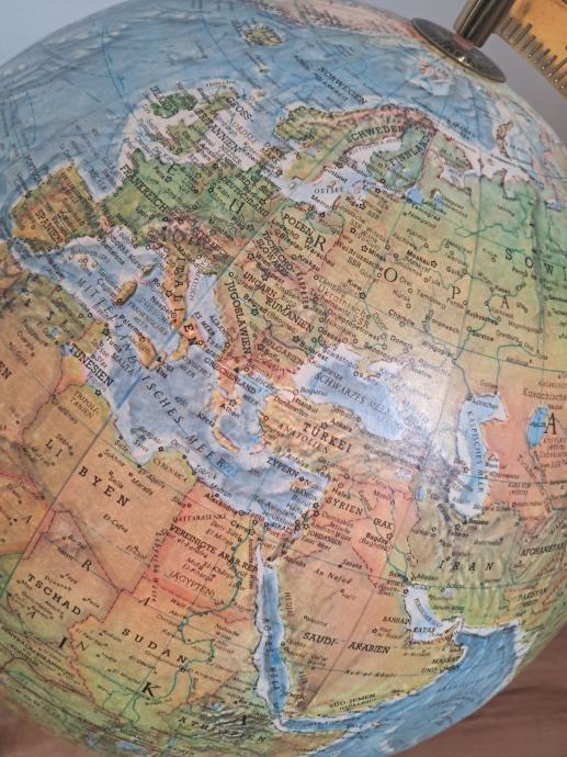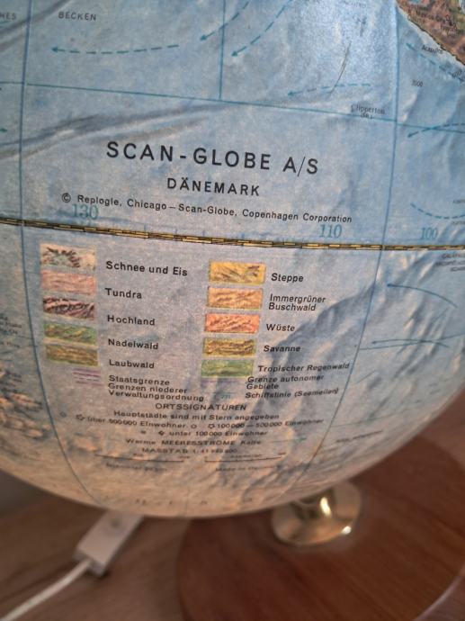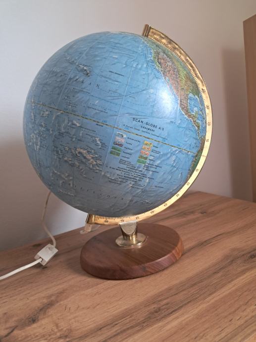 Prodam globus na lesenem podstavku in osvetlitvijo. Premer krogle 30 cm in višine 38 cm. Proizvajalec Scan Globe Danemark.Tel. 040 843 256