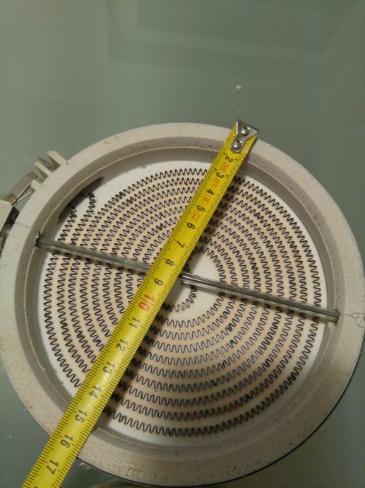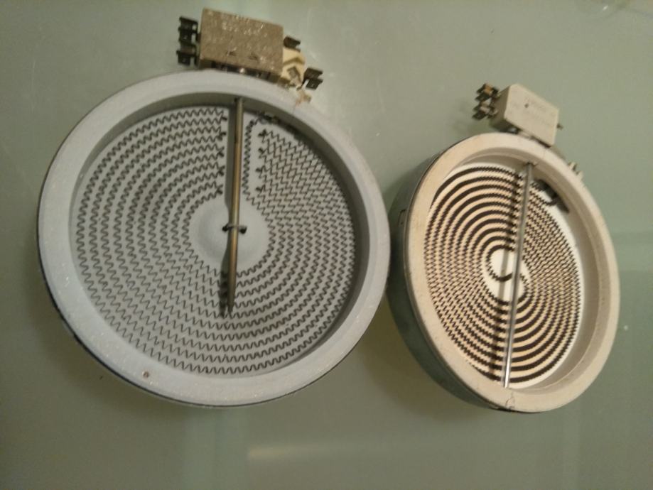 Prodam dva delujoča grelna telesa oz grelni plošči za steklokeramično ploščo premera približno 16 cm. Obe plošči imata enak obseg.