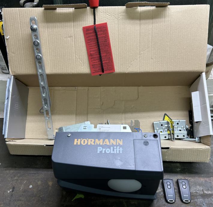 Prodajam nov komplet motorja za pogon dvižnih garažnih vrat z dvema daljincema.