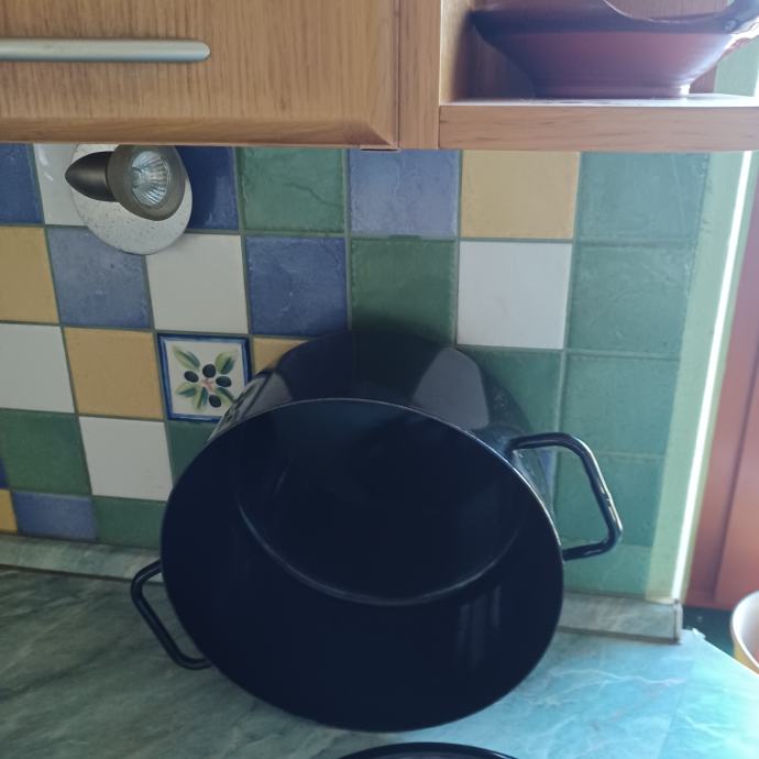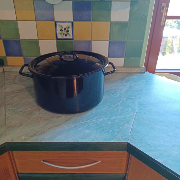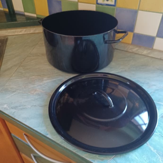 Litoželezni lonec, črni emajl premera 30 cm, višina 16 cm dobro ohranjen kot nov