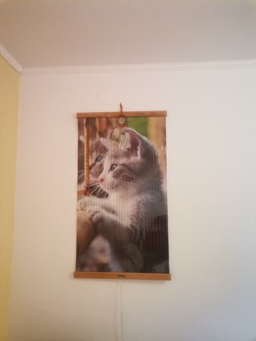 Prodam IR panel sliko: plastificirana slika, navpično so v njej napeljane žice. Mere: 100 cm x 56 cm. Slika oddaja prijetno toploto, primerna za manjšo sobo (mi smo jo imeli v otroški sobi 12 m2). Nima termostata. Možen prevzem Cerknica - Ljubljana ali po pošti na stroške kupca.