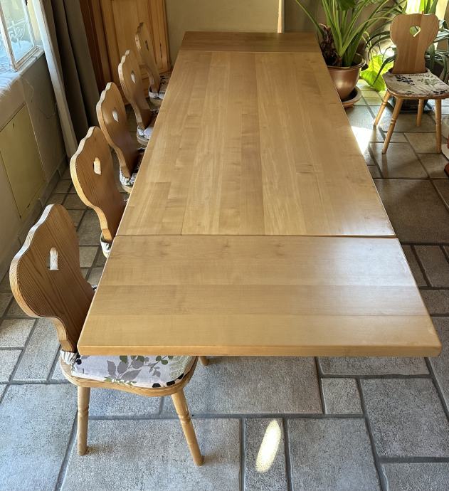 Masina jedilna miza bukev 170cmx90 z dvema podalškoma 2x40 cm prodam.