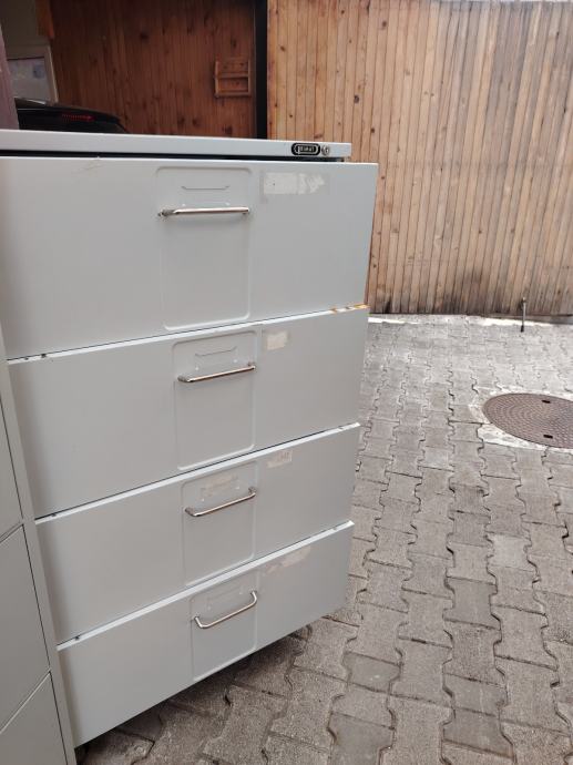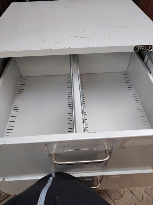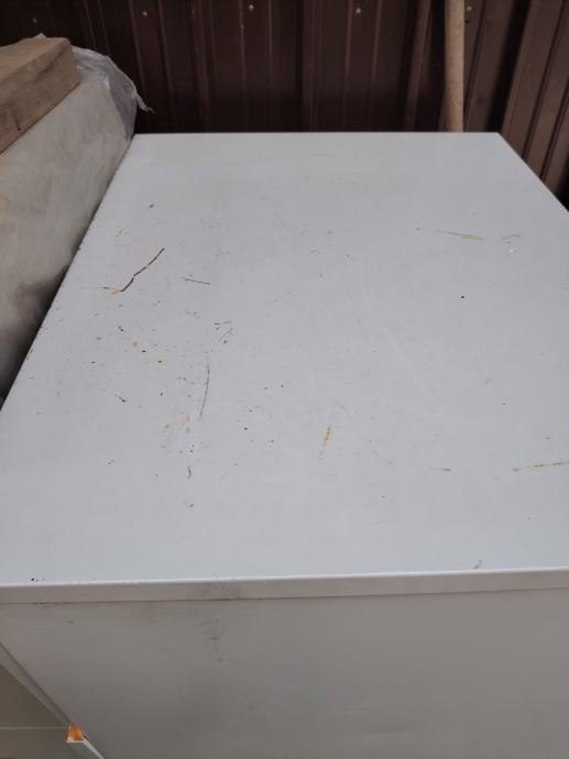 Srednje ohranjen predalnik, ponekod popraskan vendar uporaben za skladišča ali delavnice.