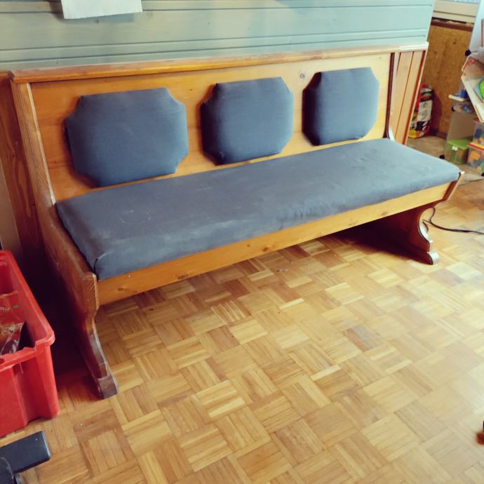 Prodam masivno leseno klop, mogoče za kakšno klubsko sobo, blago je bilo preoblečeno in se lahko odstrani/preobleče.
