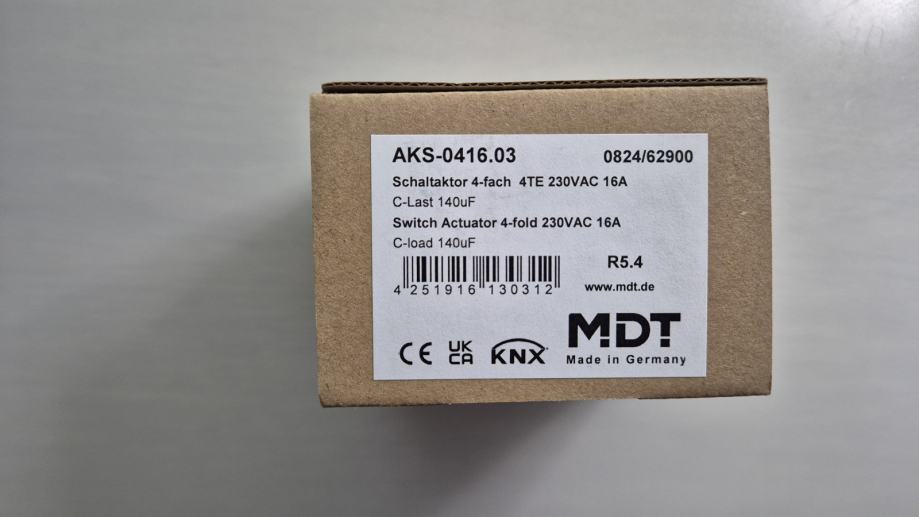Prodam popolnoma nov 4 portni vklopni aktuator AKS-0416.03 MDT Tecnologies. Ima 4 vklope do 16 A.