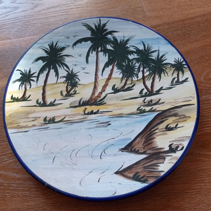 Prodam večji keramični krožnik, ročna poslikava. Lahko za uporabo, ali kot okrasek, kot slika.Premer je 32 cm.
