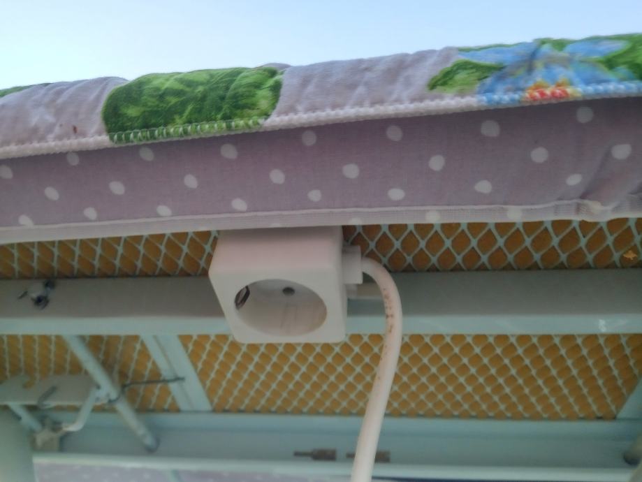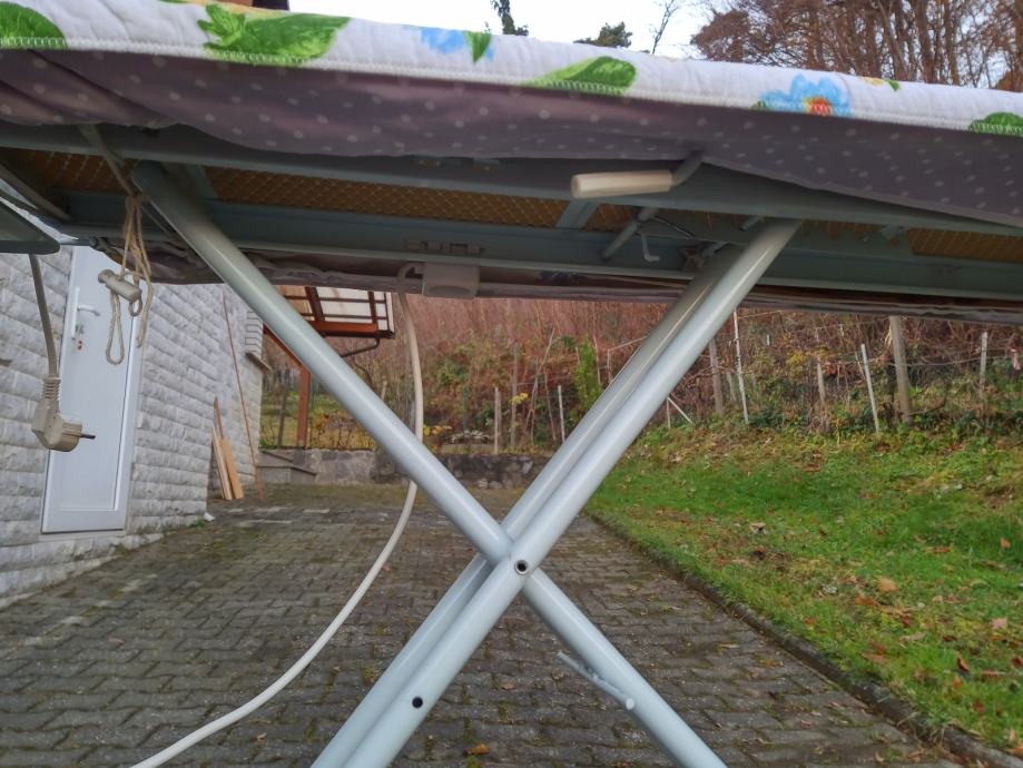 Likalna deska z penasto prevleko in mehko podlogo, nastavljivo po višini in držalom za likalnik , in vtičnico pod desko