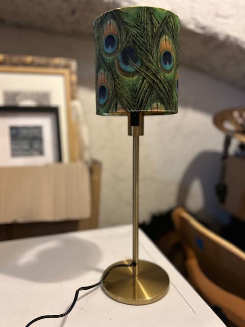Prodam lučko, medeninast podstavek z zelo posebnim žametnim širmom.
